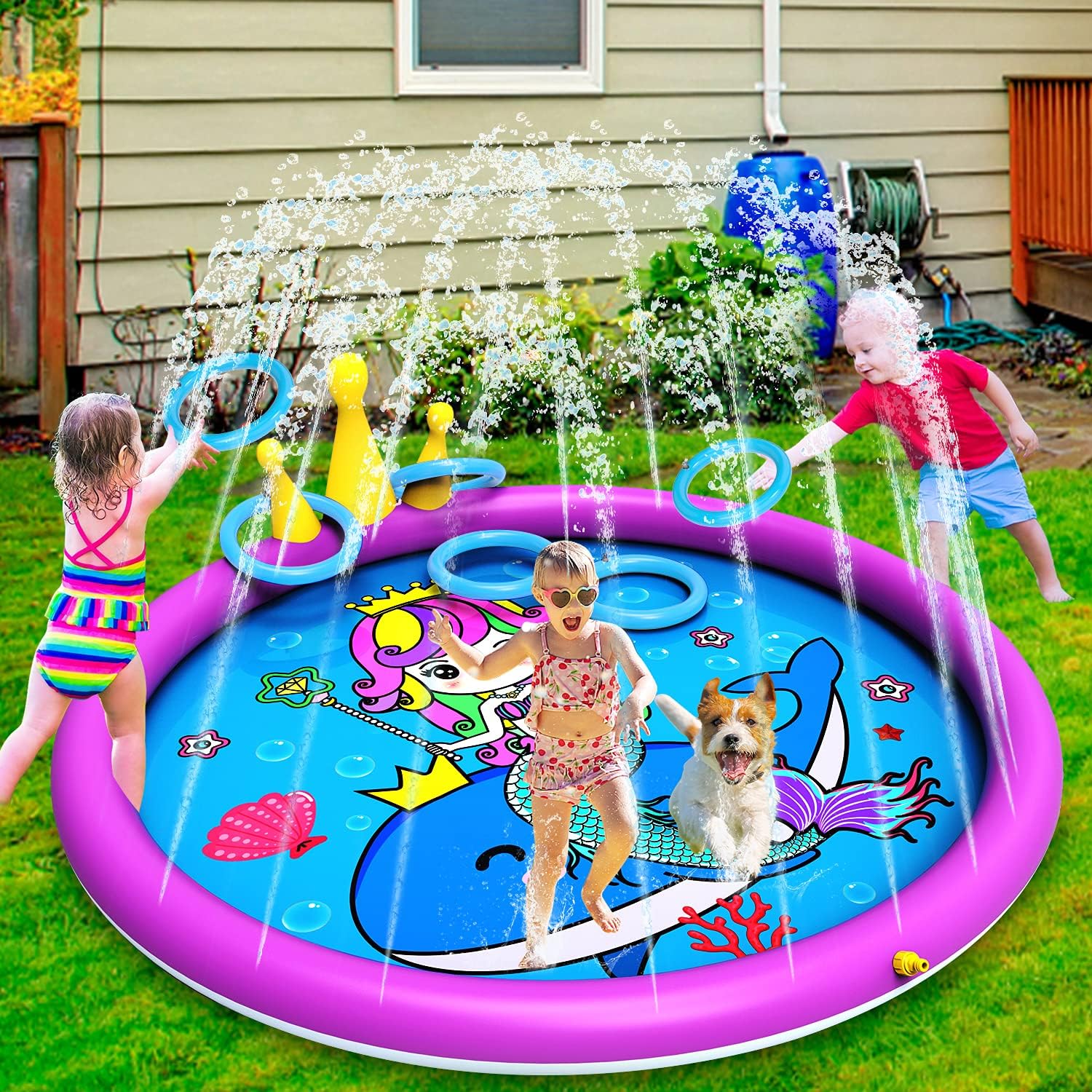 6. Играйте си с вода. Включете пръскачката. Напълнете водните пистолети или спрейове (можете да оцветите водата с оцветител за храна, ако детето Ви не е чувствително към багрила) и си устройте водна битка. Или пък се пуснете по градинска водна пързалка за класическо забавление на открито.